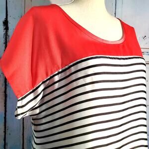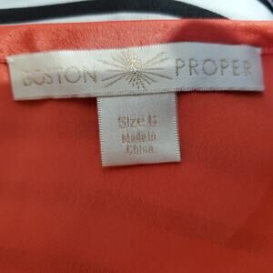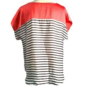 Boston Proper Coral & Black White Stripe Silky Top Size 6 Light Classic Chic