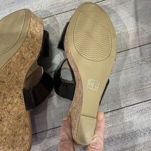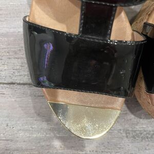 Boston Proper Cork Wedge Heels Size 8.5 M Patent Faux Leather Gold Toe Club