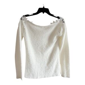 Boston Proper Cream/ White Lace Trim Plush Sweater Size Small