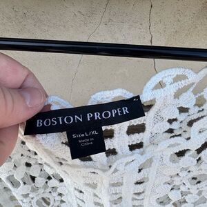 This Boston Proper Crochet Poncho is a stunning addition to your wardrobe, combining bohemian charm with sophisticated style. In a crisp white color with playful fringe detailing, it’s perfect for layering over your favorite outfits. The poncho is new with tags and comes in a size Large/Extra Large, offering a relaxed fit with a width of 30 inches and a length of 25 inches. Whether you’re dressing up for a night out or adding a stylish touch to casual wear, this versatile piece is sure to stand out.
