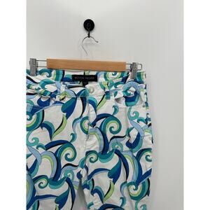 Boston Proper Denim Pants Women 10 Abstract Geometric Retro High Waisted White