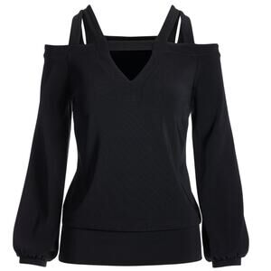 Boston Proper Double Strap Cold Shoulder Top – Black, Size M