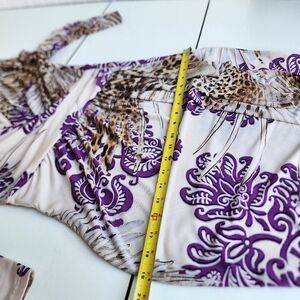 Boston Proper Dress Paisley Leopard Floral Purple Tan Stretch Faux Wrap Zip 6