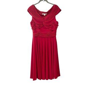 Boston Proper Dress Ruched Red Draped Twist Jersey Fit Flare A-Line Solid sz 10