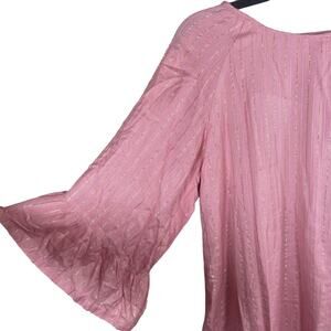 Boston Proper Dress Women's Large Pink Gold Striped Beaded Silver Fringe Low Back