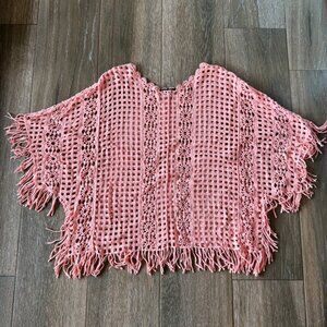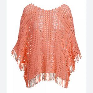 Boston Proper Effortless Crochet Pullover boho poncho in peach bud pink size S/M
