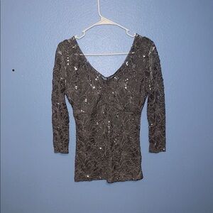 Boston Proper Elegant Gray Silver Sequin Women's Top - small. B4