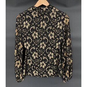 This Boston Proper cowl neck top features a refined floral gold and black lace design. The long sleeves and delicate construction add elegance to your wardrobe.