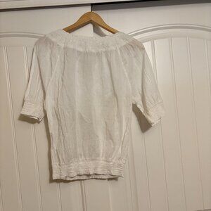 Boston Proper Embellished Shirt Medium White Gold Keyhole Smocked Tie Cotton
