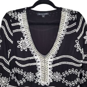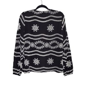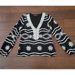 Boston Proper Embroidered Eyelet Beaded Top Embellished Black & White Size M