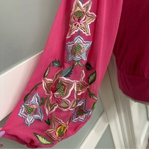 Boston Proper Embroidered Florals Off The Shoulder Top Small Pink Sheer Sleeves