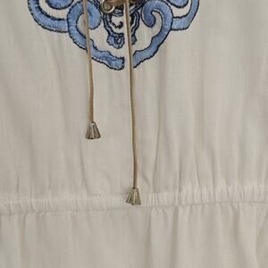 Boston Proper Embroidered Peasant Top Size Small White Blue Lace Up Boho Beachy