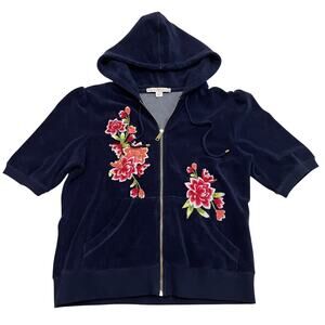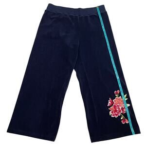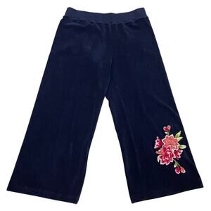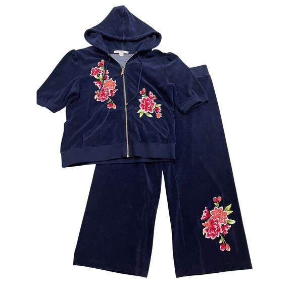 This set has never been worn. The deep navy color pairs beautifully with the vibrant florals, giving it that Y2K Juicy-era lounge look without being over the top.