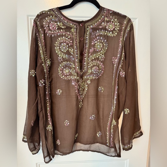 Boston Proper Embroidered Sequined Tunic Size XS