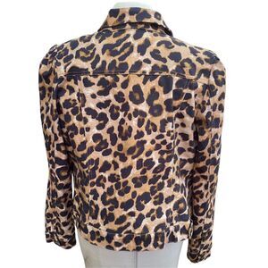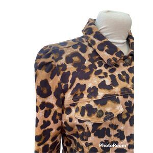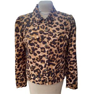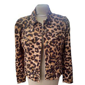 Exploded Cheetah Print jean jacket by Boston Proper size XL. Never Worn. Colllared, long sleeves and button front and cuffs. Side pockets.