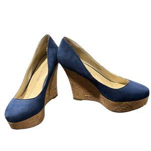 Boston Proper Faux Suede Platform Cork-Style Wedges - size 8.5