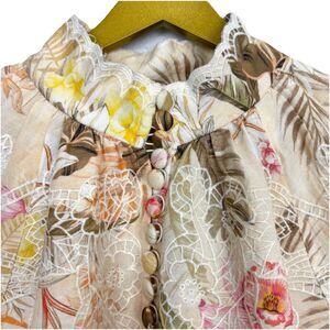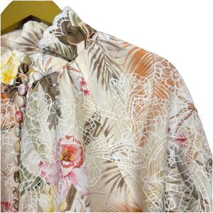 Boston Proper Floral Embroidered Button Up Linen Tunic Blouse Size M Ipanema