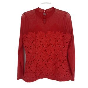 Boston Proper Floral Lace Mesh Knit Top SIZE 8 Red Romantic Feminine Party
