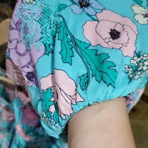 This relaxed blouse from Boston Proper showcases a stunning blue and pink floral pattern with a stylish tie front design. The V-neckline and billowy sleeves with gathered cuffs offer a touch of elegance, while the lightweight fabric ensures comfort for spring and summer wear. lightweight, loose