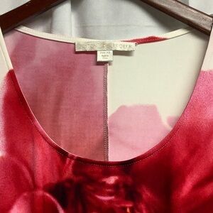 Size XS Boston Proper sleeveless watercolor floral dress. White/ivory w/shades of pink, red & gold. Flowy.