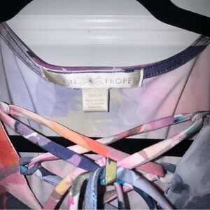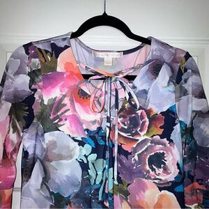 Boston Proper Floral Stripe Print Long Bell Statement Sleeve Top