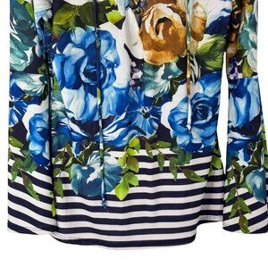 Boston Proper Floral Striped Blouse Long Bell Sleeve Stretchy Lace Up V Neck XXS