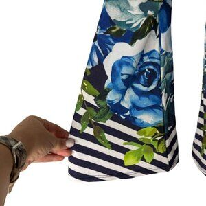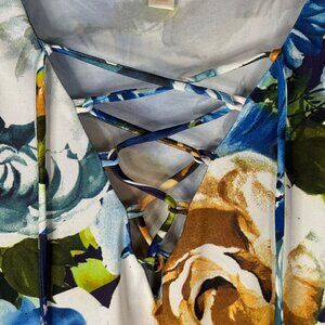 Boston Proper Floral Striped Blouse Long Bell Sleeve Stretchy Lace Up V Neck XXS