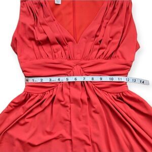 Boston Proper Flowy Ruched Sleeveless Orange Midi Dress