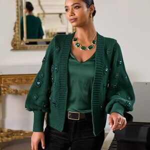 A bejeweled beauty, our Gem Embellished Cardigan combines cozy comfort with colorful brilliance. The chunky knit design provides much needed warmth, while the faceted gem embellishments make it a truly unique layer that instantly enhances all your ensembles.