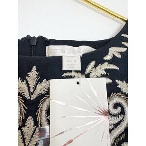Boston Proper Gold & Black Brocade Damask Embroidery Embellished Peplum Top NWT Size 0