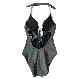 Boston Proper Gray Halter One-Piece Swimsuit Rhinestone Details Size 10