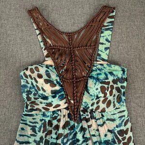 Boston Proper Halter Top Figure Flattering Animal Print Lined Padded Turquoise B