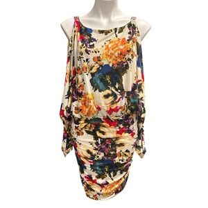 Boston Proper Heartthrob Mini Dress Floral Ruched Cold Shoulder Size S bodycon