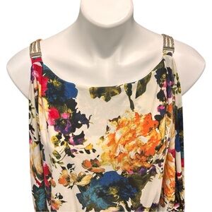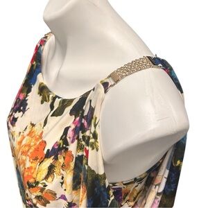 Rare find! Boston Proper Heartthrob Mini Dress Floral Ruched Cold Shoulder with Gold Accent Straps, Women’s Size Small ~ Great condition.