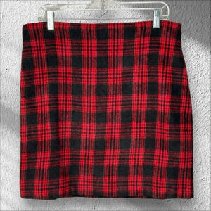 Boston Proper Holiday Plaid Mini Skirt red black wool blend Size 12 Festive