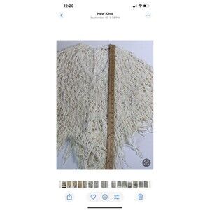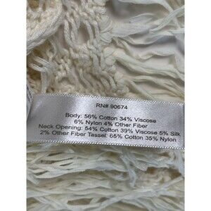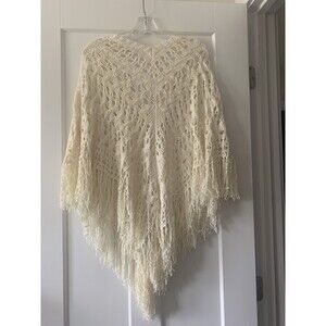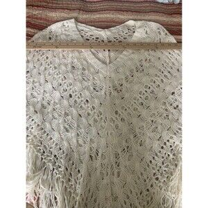 Boston Proper Ivory/Cream Boho Knit Shaw Poncho With Fringe XXS/XS