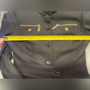 Fitted jacket with gold hardware detailing.