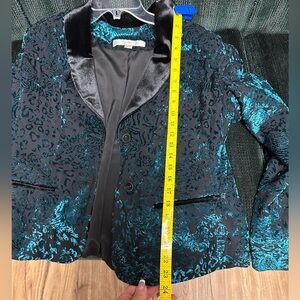 Boston Proper Jacket with teal/blue/black velveteen fabric. 2 button front. Like new.