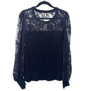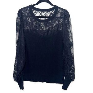 Boston Proper Lace Illusion Balloon-Sleeve Sweater - Black L. This item is pre-owned in excellent condition.