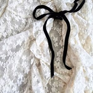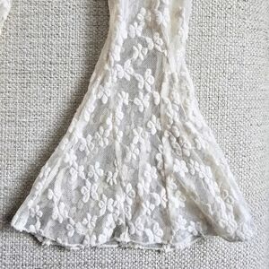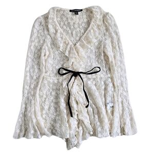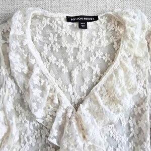 Boston Proper Lace Knit Ruffle Tunic Top Off White Embroidered Boho Y2K Small