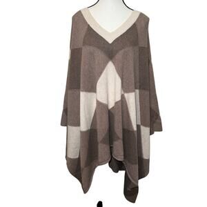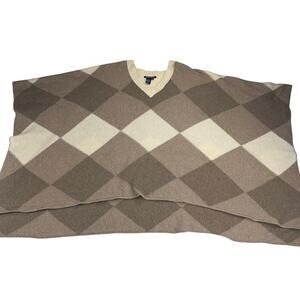 Boston Proper Lambswool Blend Ovetsized Poncho Sweater Brown Diamonds Size M/L