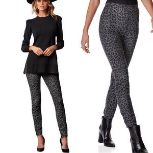 Boston Proper Leopard Animal Print Ponte Pull on Pants Size Medium Gray Black