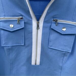 Boston Proper Light Blue Half Zip Top XL Pockets White Trim Cotton Blend Knit