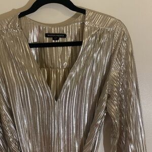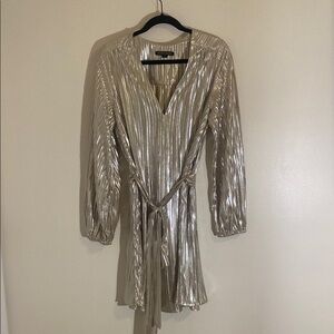 Boston Proper Metallic Pleated Long-Sleeve Dress Platinum Women’s size Medium