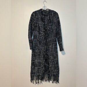 Boston Proper Metallic Tweed Duster Cardigan Sz 4 Fringe Holiday Party