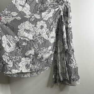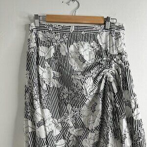 Boston Proper Midi Skirt Womens M Black White Striped Floral Maxi Ruched Boho