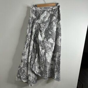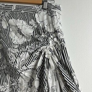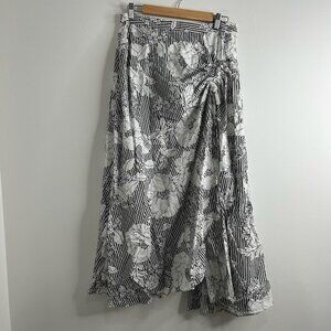 Boston Proper Skirt Womens Medium Black White Striped Floral Maxi Ruched JK2185-BP