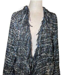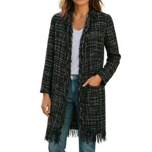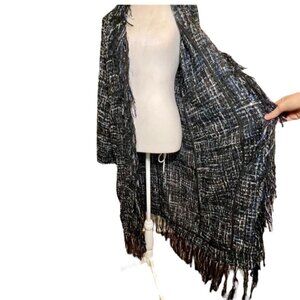 Boston Proper Midi Tweed Cardigan Metallic Fringe Grunge Whimsigoth Fairy 12