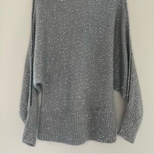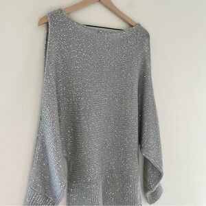 Boston Proper women’s open sleeve sequin sweater in grey and silver. Size large.