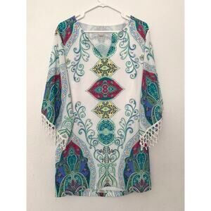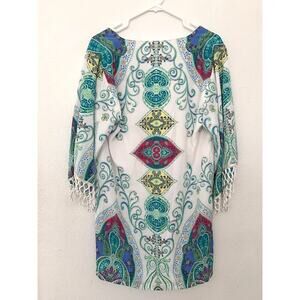 Boston Proper Multicolor Moroccan Print Fringe 1/2 sleeves Kimono Tunic Dress XS